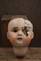 Gammelt 1800 tals dukke hoved i bemalet papmache...
