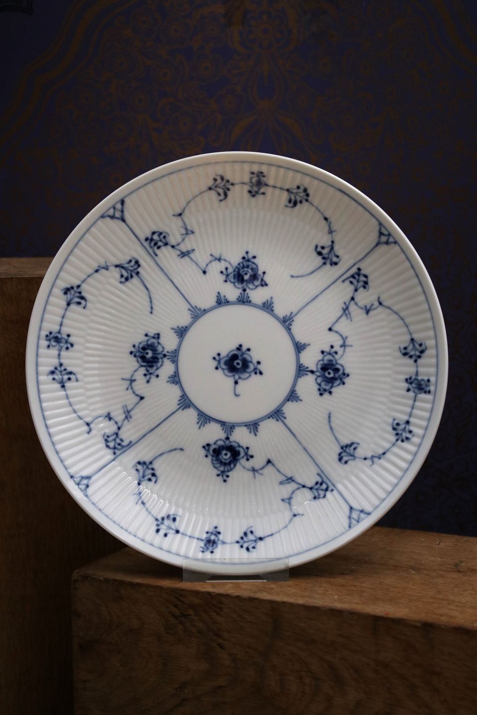 Round cake plate in Fluted Blue Plain from Royal Copenhagen.