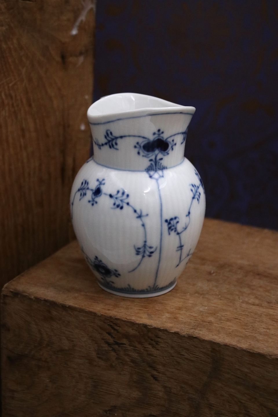 Royal Copenhagen , Musselmalet Riflet flødekande.