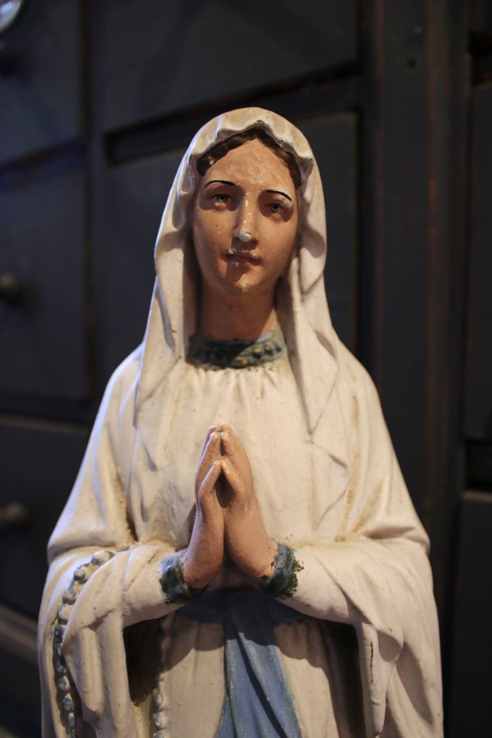 Fin , gammel fransk Madonna figur i bemalet gips med en fin gammel patina. Højde: 56cm.