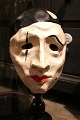 Decorative, old clown mask in painted papier-mâché mounted on old black painted wooden base. H: 44cm. W: 16cm. Item number: Klovnemaske