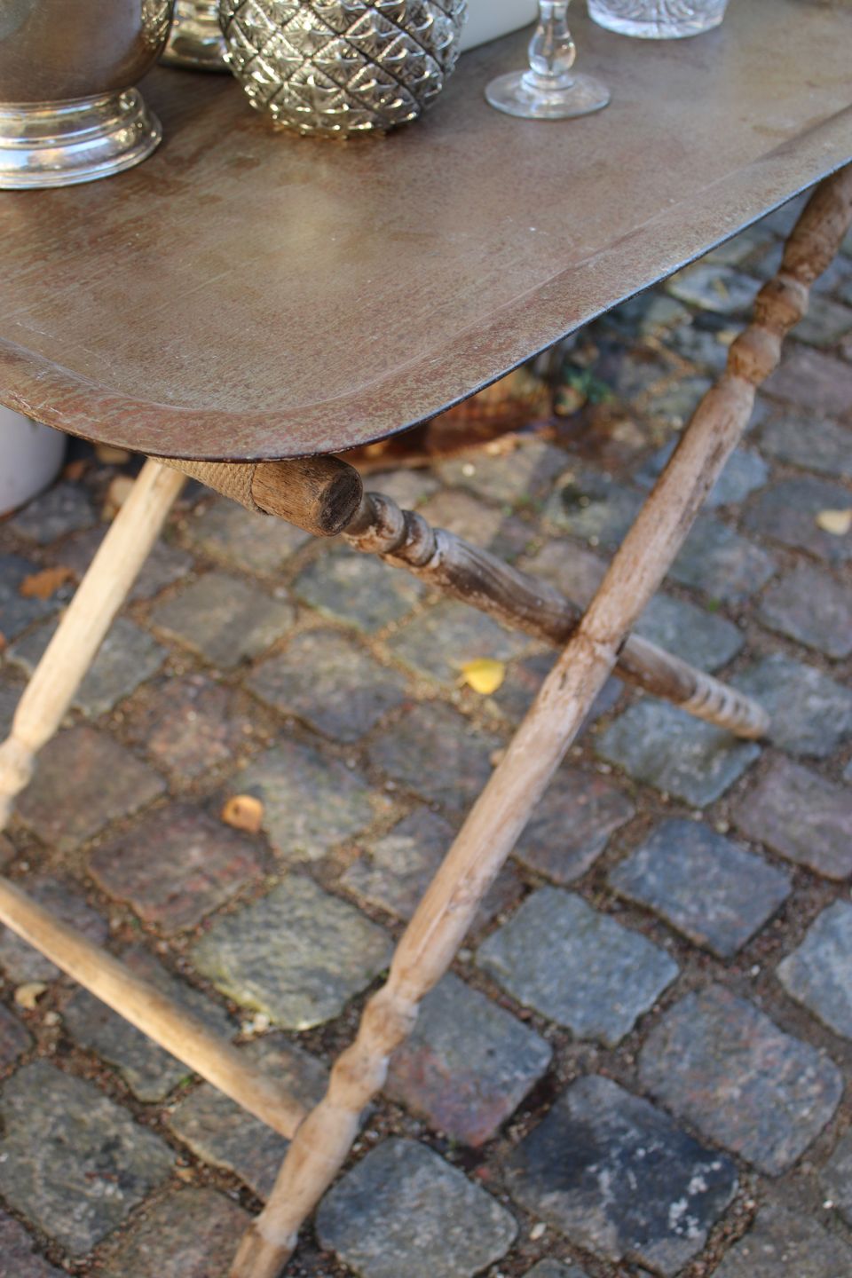 Gammelt bakke bord med understel i træ med en rigtig fin patina og