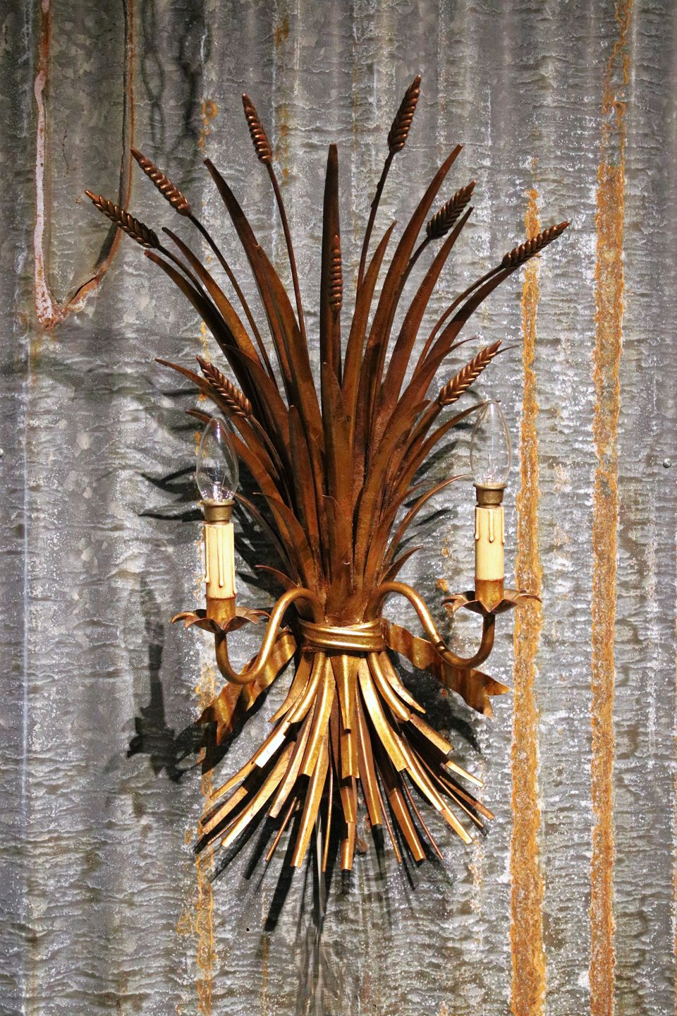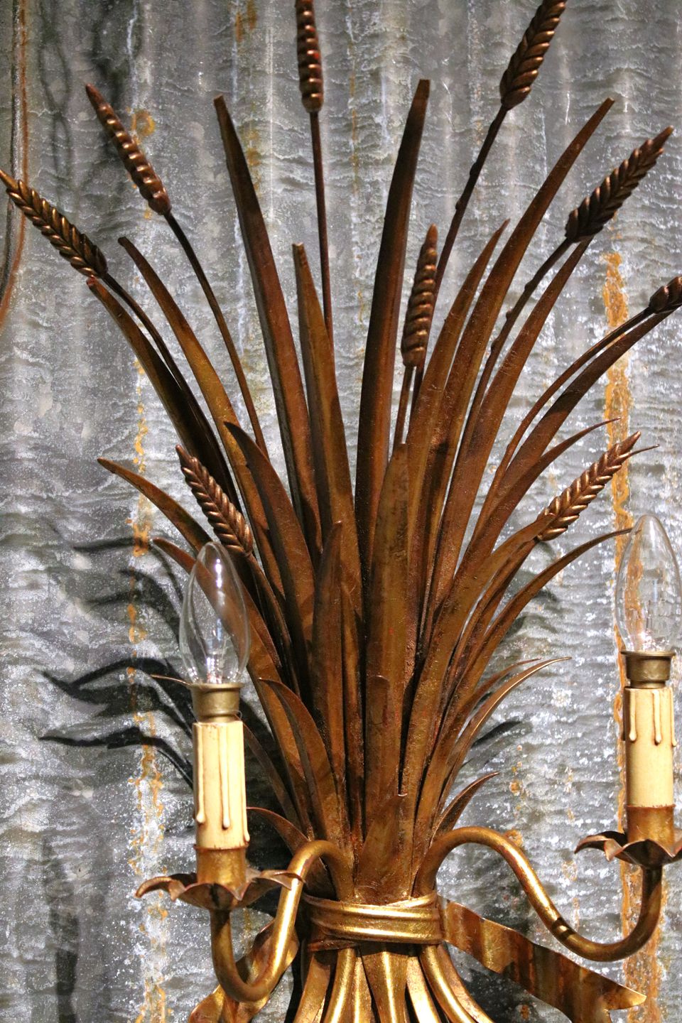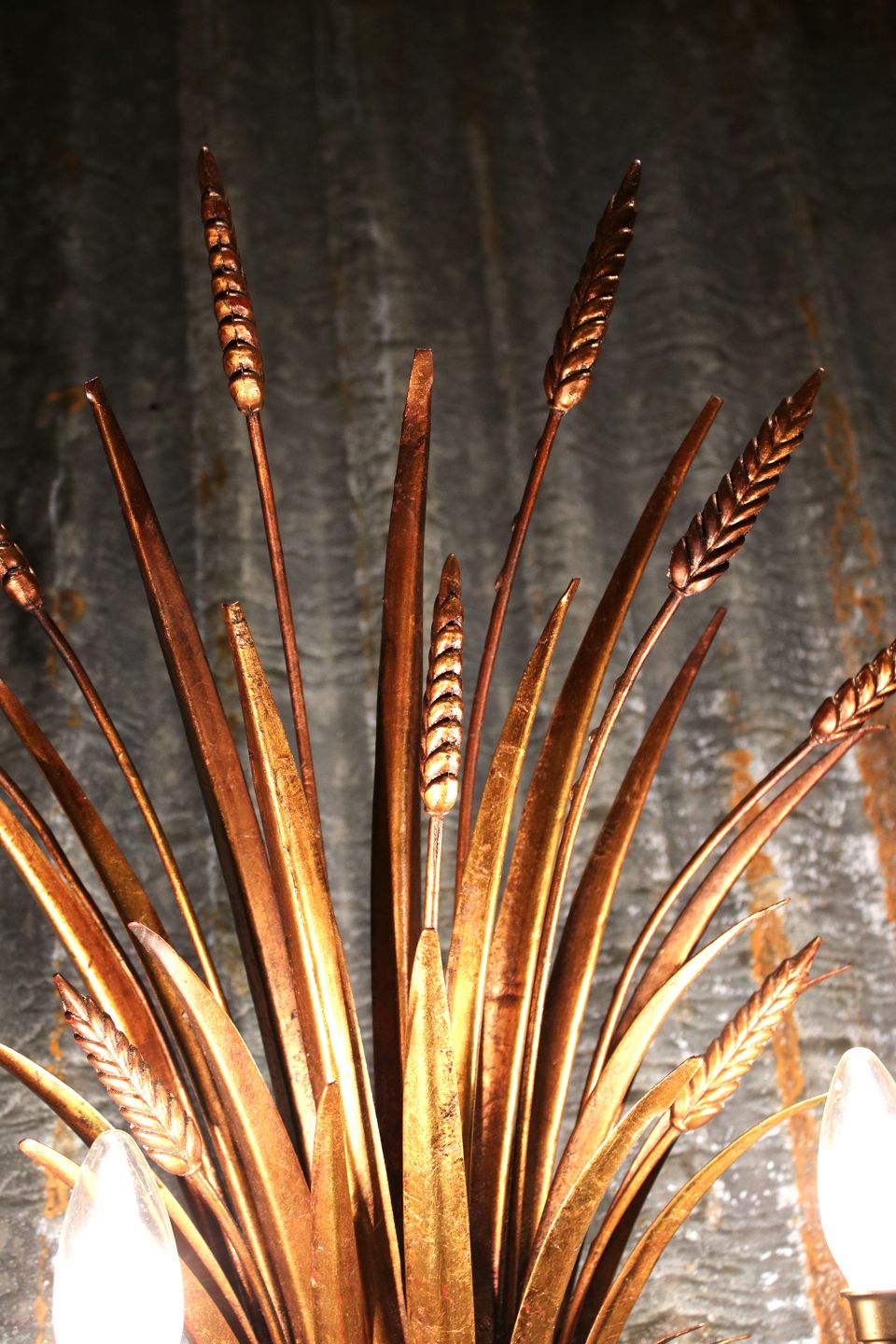 Stor forgyldt Hans Kögl metal væglampe (Buket af kornneg) i Hollywood Regency stil fra 60érne. Væglampen har 2 lyskilder og måler: