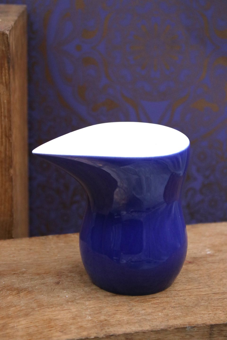 i mørkeblå glasur. H: 10cm.
