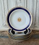 Set på 6 B&G dessert dybtallerken dekoreret med kongeblå fane, græsk evighedsmønster og våbenskjold i guld 21 cm. |