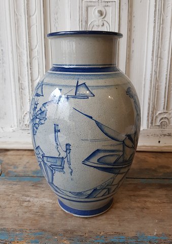 Ove Larsen for B&G unika stentøjs vase dekoreret med maritime motiver 29 cm.