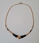 Vintage collier i 14 kt guld med onyx fra det Græske smykkehus Facadoro. Stemplet: 585 - N20 - Facadoro Længde 44 cm. Bredde 3 - 15 mm. Vægt 17 gram.