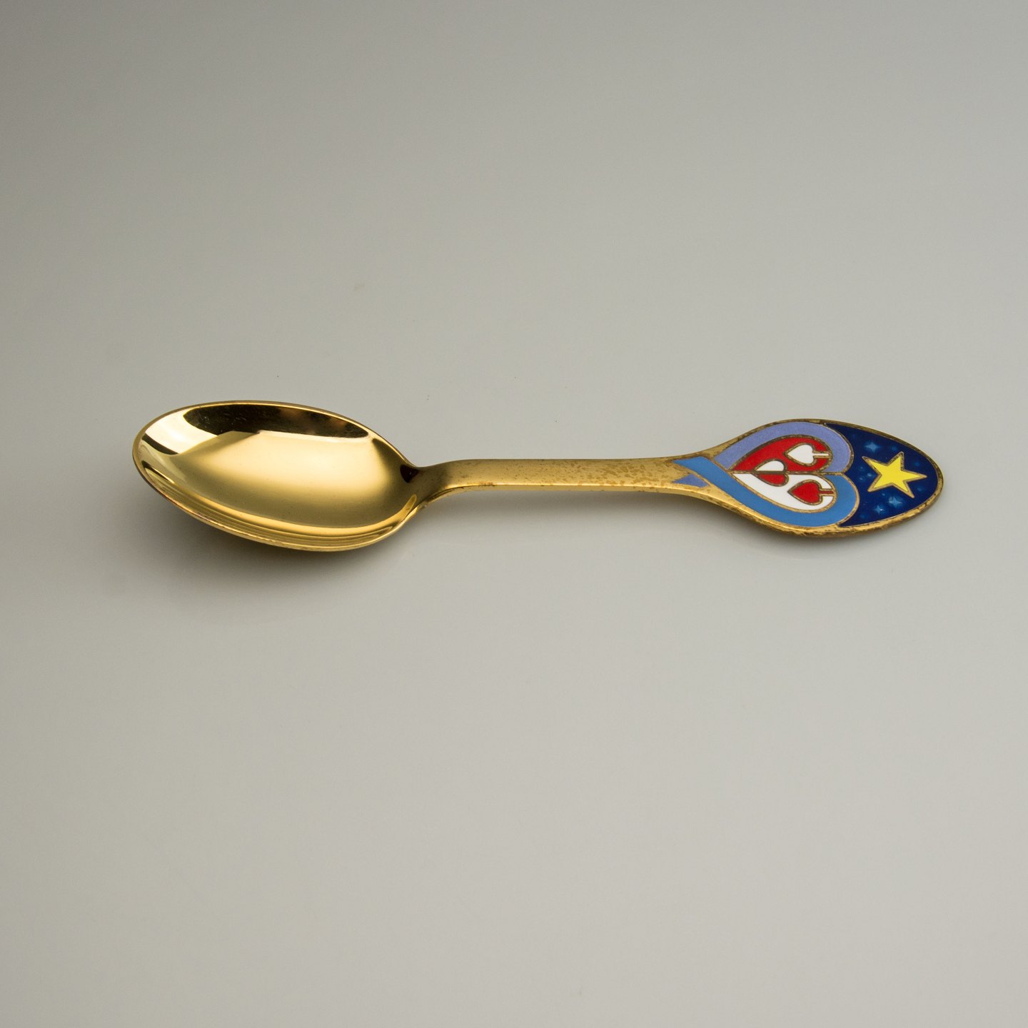 Juleske fra år 2003 med motivet hjertets glød i forgyldt sølv