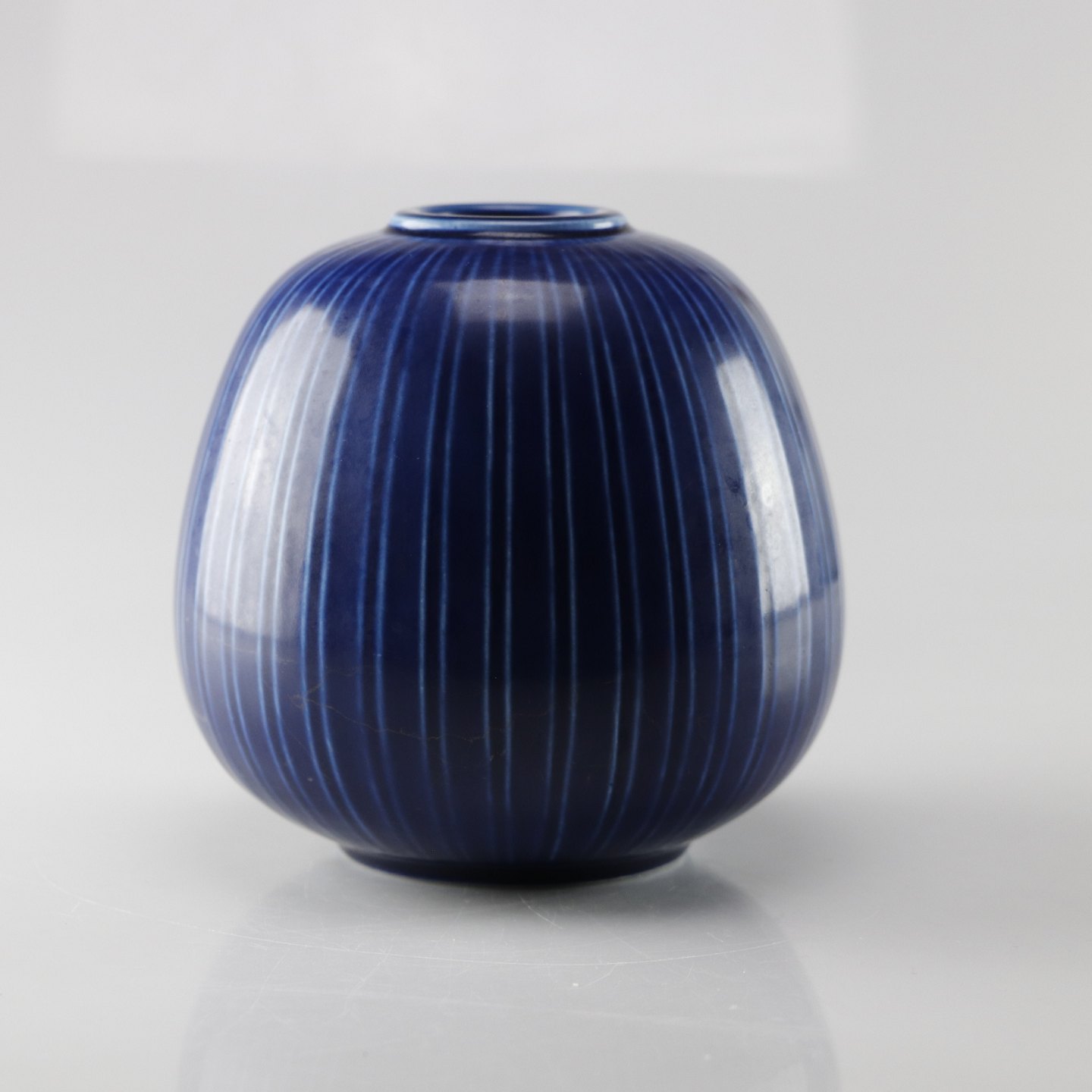 Mørk blå vase med lodrette lyse striber