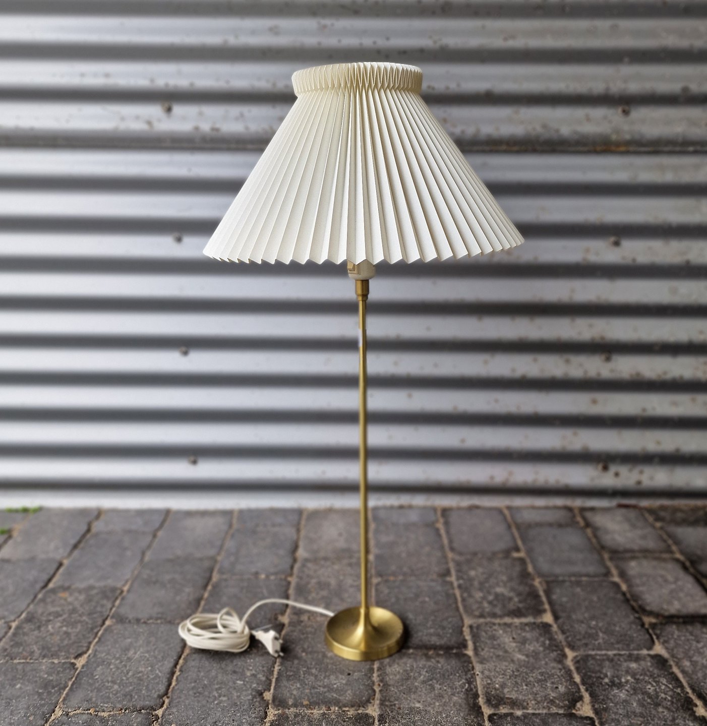 Messing bordlampe med hvid plisseret Le Klint skærm. Model 307/8