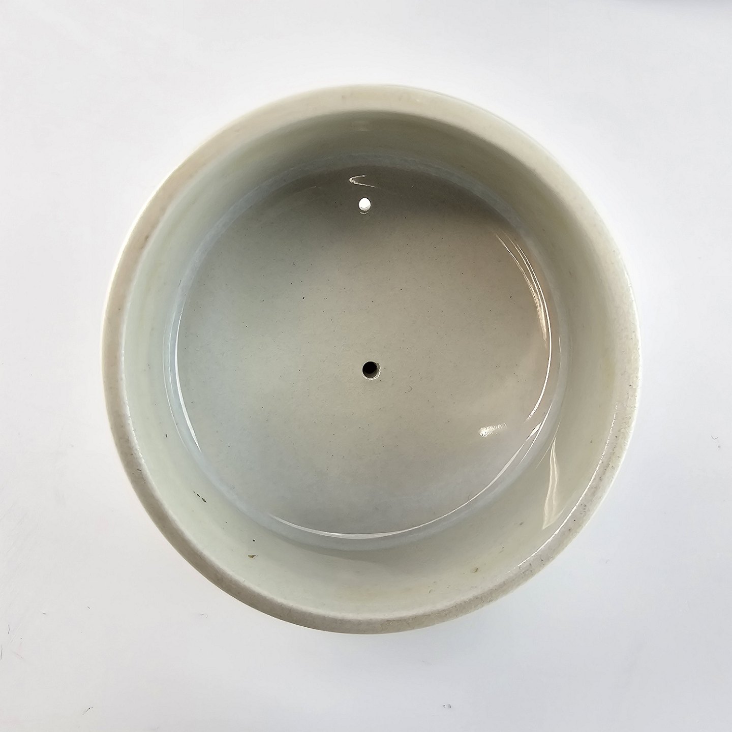 Anette er i lys fajance, dekoreret med hvide blomster på blå baggrund