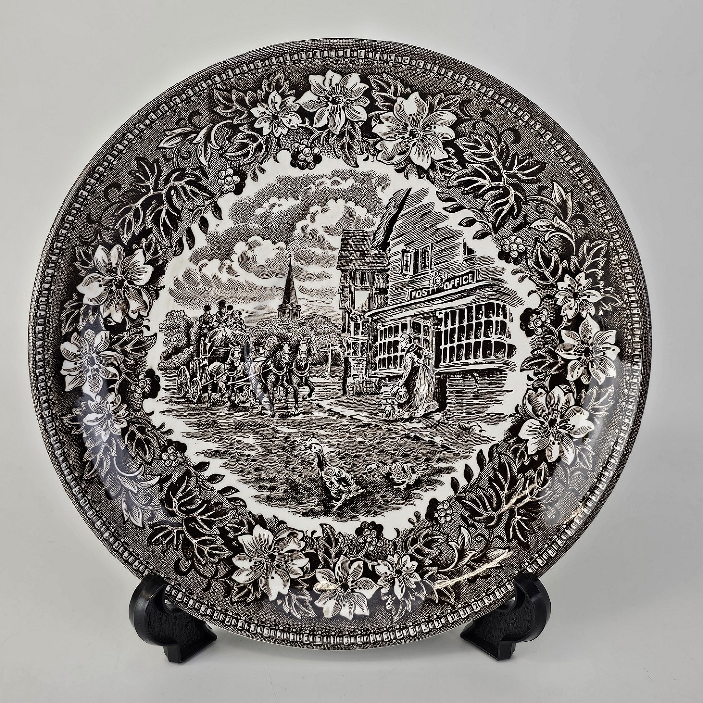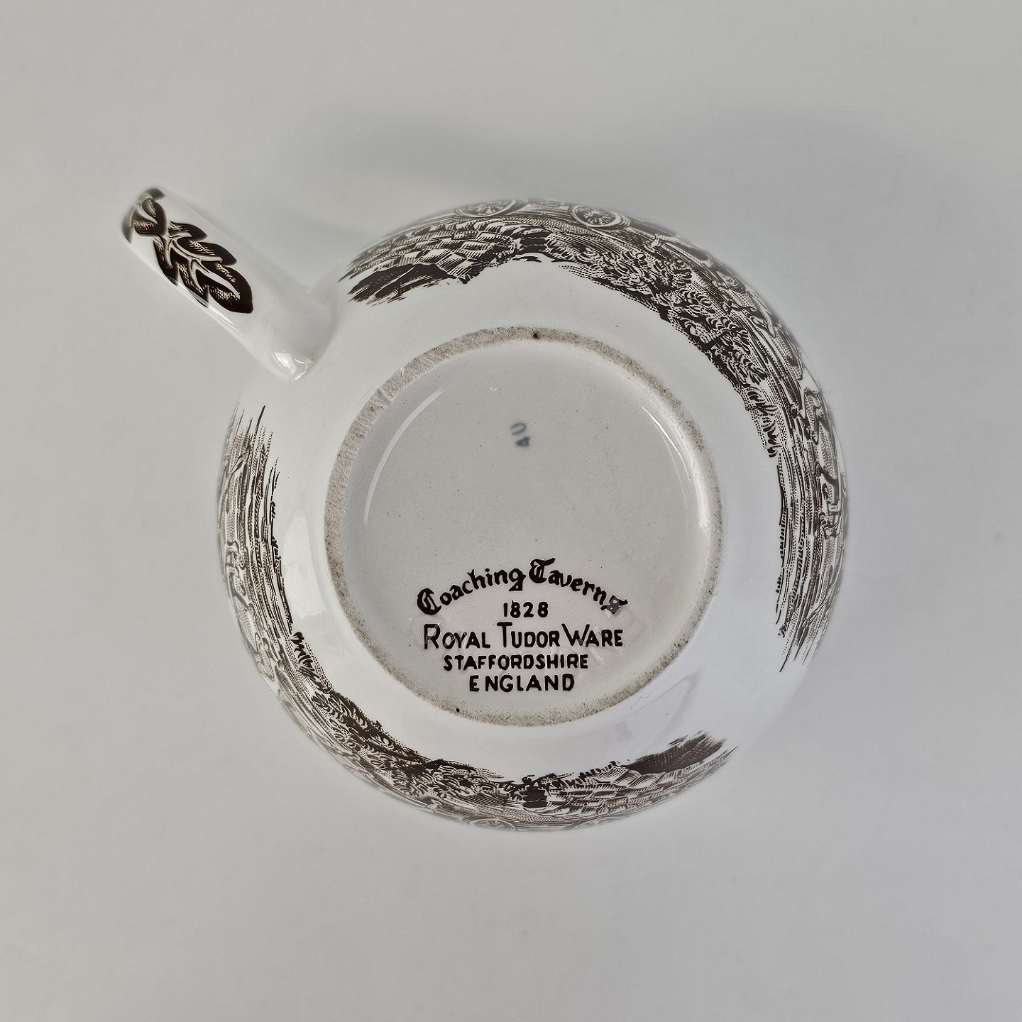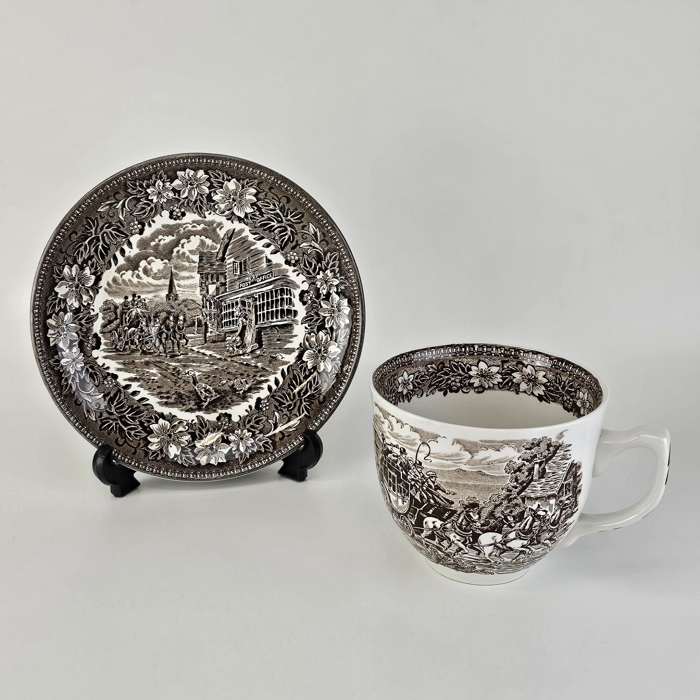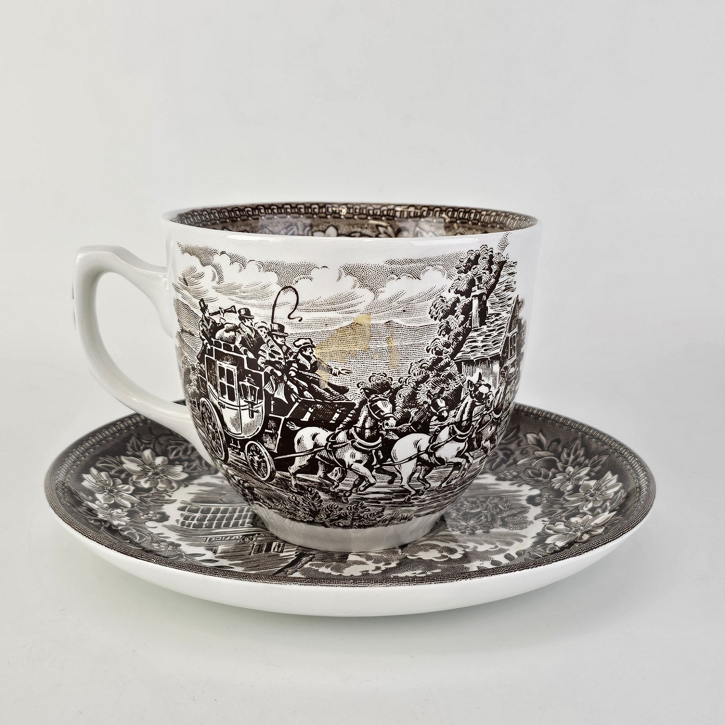 Stor kop og underkop i engelsk fajance fra stellet Coaching Taverns 1828