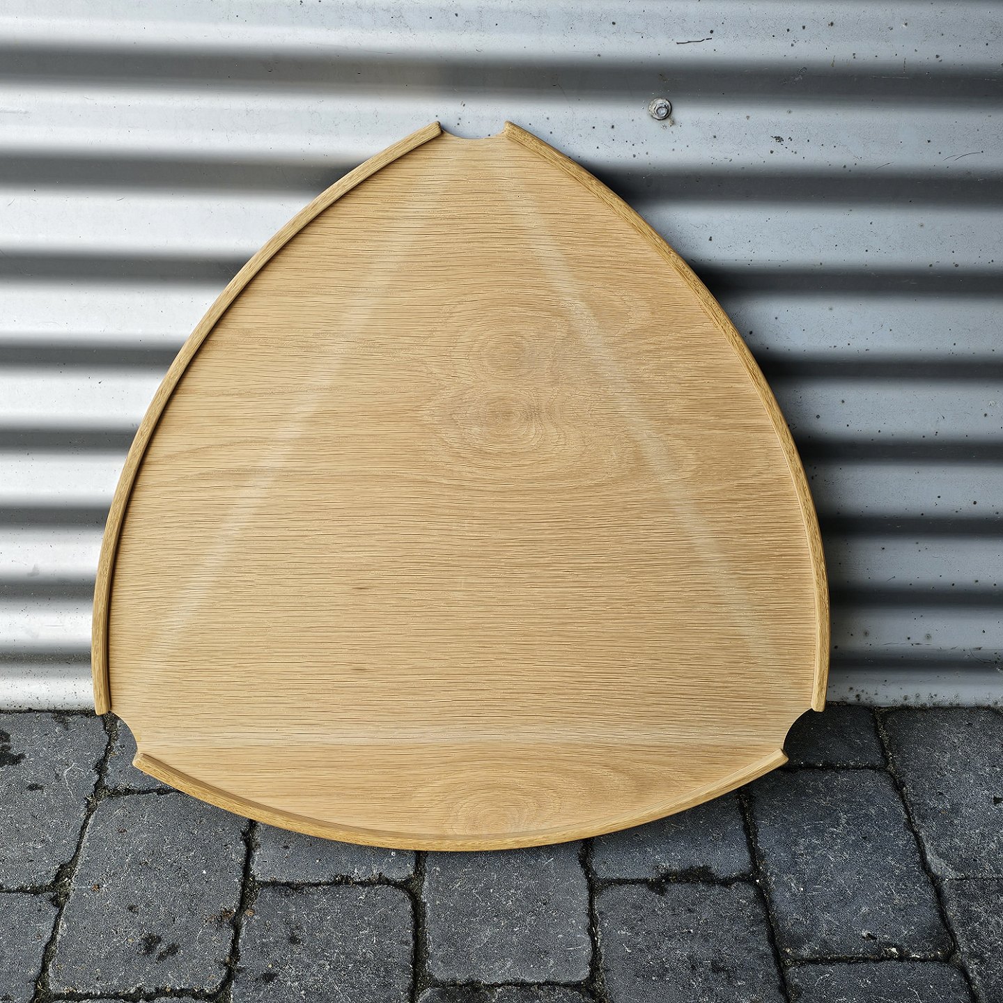 Fremstår med en lille plet og misfarvning efter stativet under bakken