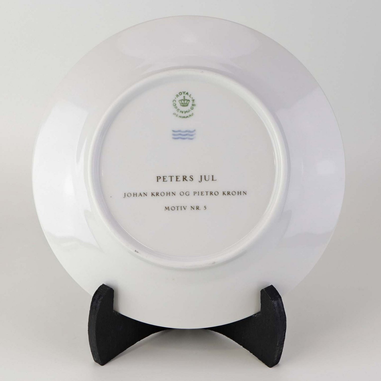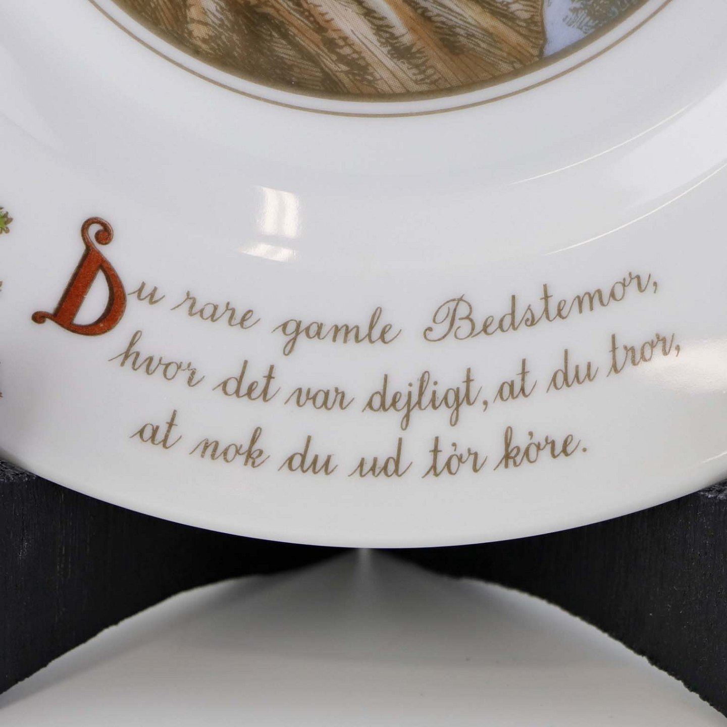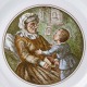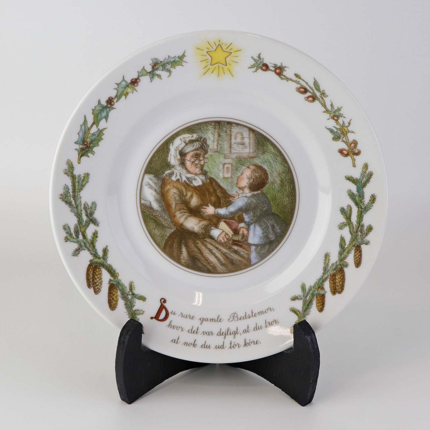 Flad desserttallerken i kongeligt porcelæn fra serien Peters Jul med motiv af bedstemor. Nr. 5