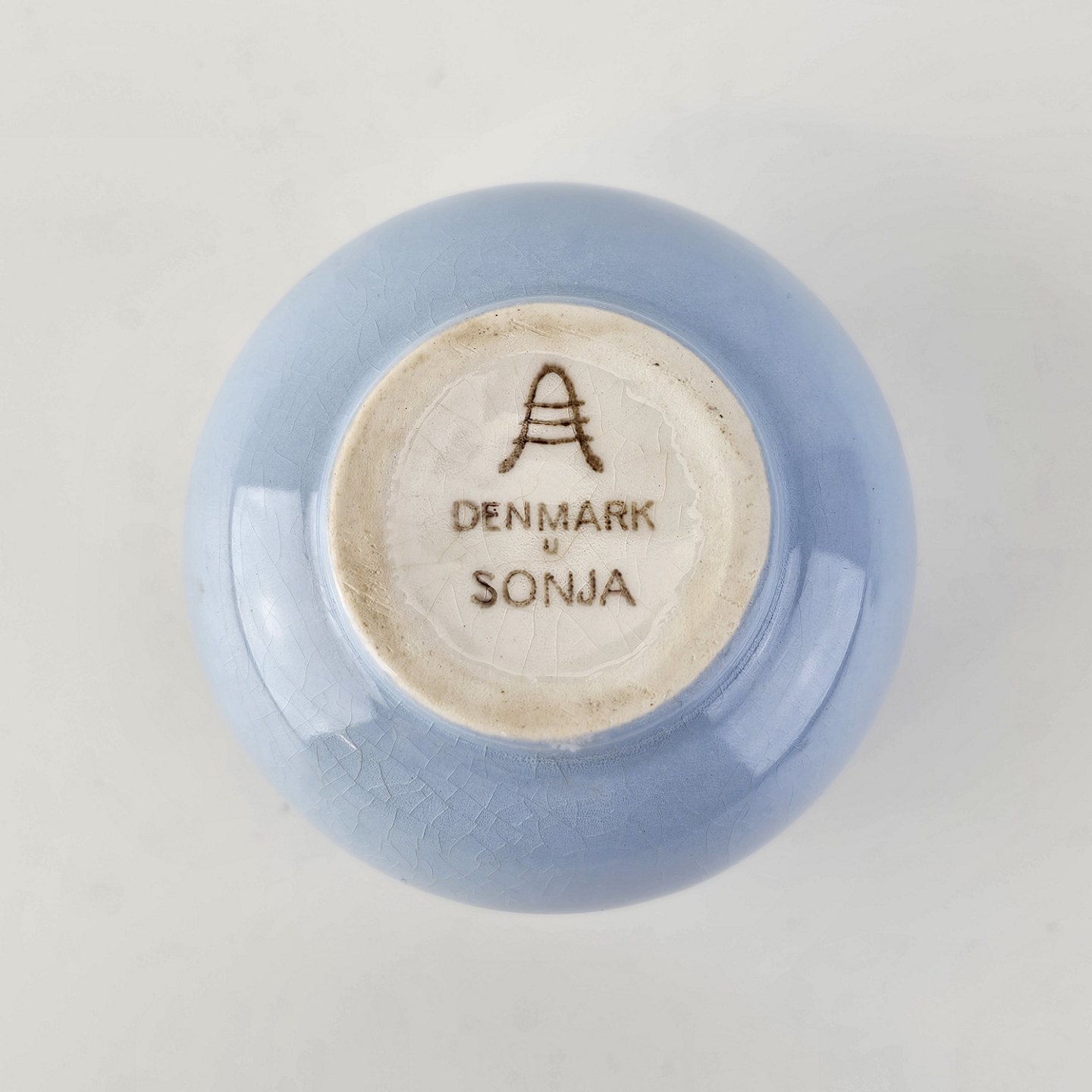 Sennepskrukke med låg i fajance fra stellet Sonja