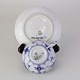 Musselmalet halvblonde er riflet hvidt porcelæn med dekoration af blå ranker og en kant med blonder.