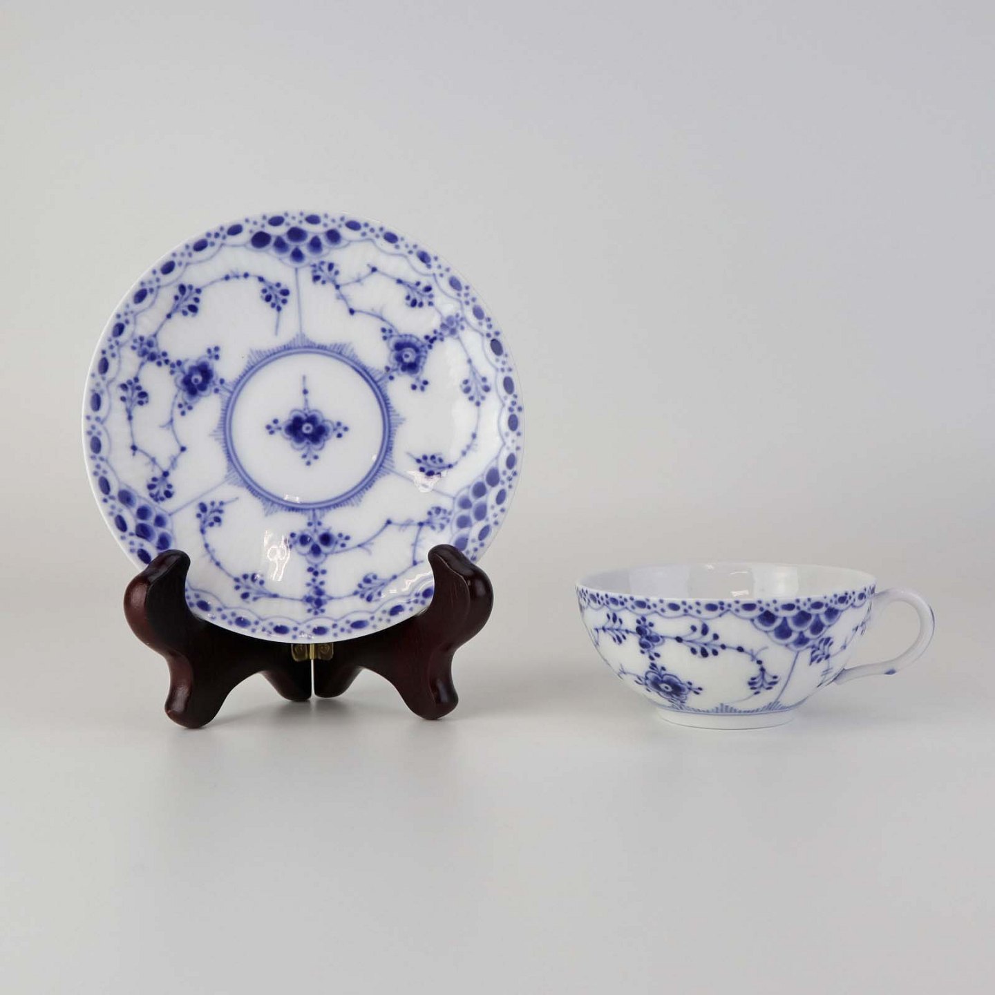 Lille tekop med underkop i kongeligt porcelæn fra stellet Musselmalet Halvblonde. Nr. 1/523 og 1/527-528