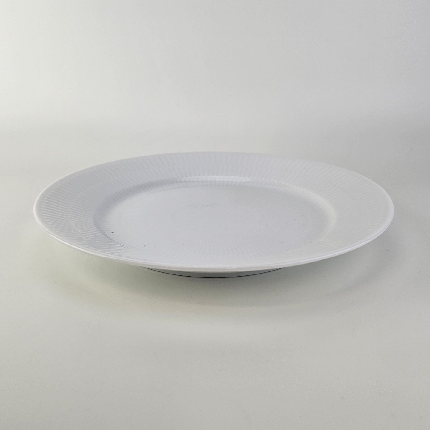Flad frokosttallerken i kongeligt porcelæn fra stellet Hvid Riflet