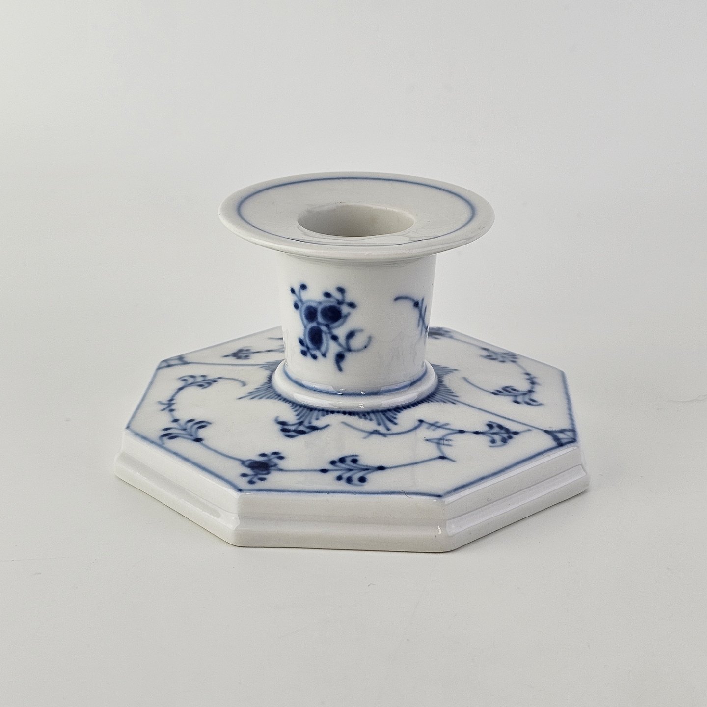 Musselmalet er af kongeligt hvidt porcelæn, dekoreret med mønster af blå ranker og blomster