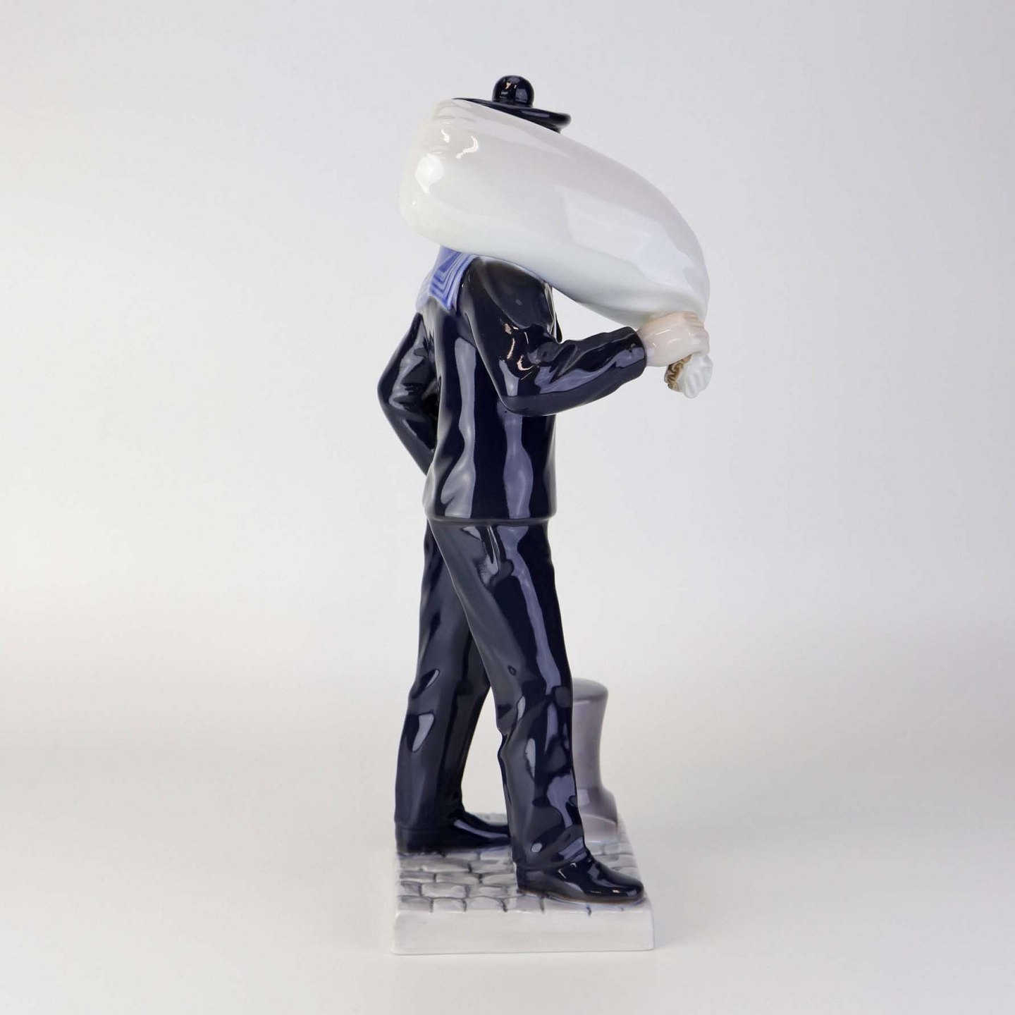 Figur i porcelæn med motiv af Matros med vadsæk fra skibet George Stage. Nr. 2456