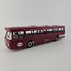 Legetøjsbil. Rødmalet DSB bus, Scania CR-76 med reklamer, chauffør og en baglåge, der kan åbnes