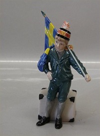 Carl Larsson Pontus Kongelig Dansk Dreng fra Sverige med svensk flag og kiste 18 cm