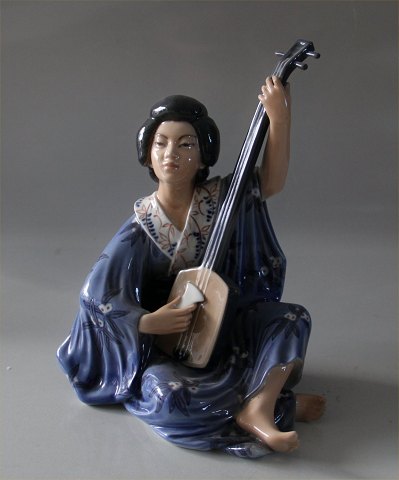 Beskrivelse: Dahl Jensen -Japansk kvinde 1155 Geisha 23,5 cm (DJ). Mærket med kongelig krone og DJ Copenhagen