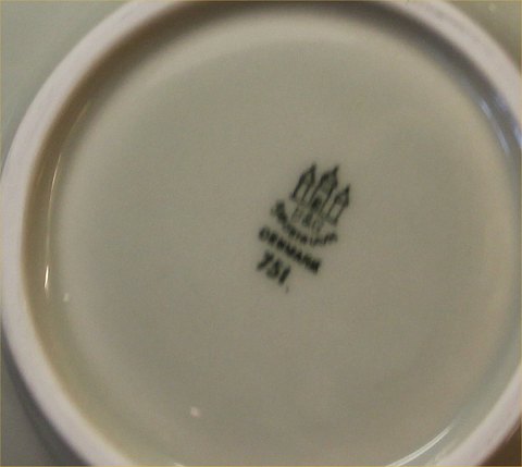 Dansk Stentøj B&G 751 Celadon grøn glaseret skål 7 x 18,5 cm relief med fugle indeni