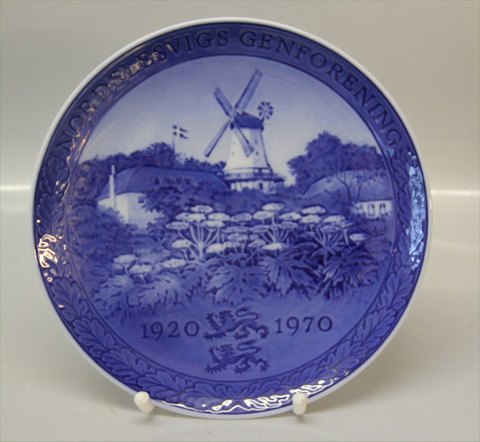 Beskrivelse: RCM325 - 1970 Genforeningsplatte. Dybbøl mølle, f. n. Slesvigs løver og årstal 1920-1970. Indskrift: NORDSLESVIGS SønderjyllandGENFORENING. Fremstillet i anledning af 50-året for genforeningen. Tegnet af Kaj Lange. 20 cm. Royal Copenhagen mindeplatter også kaldet lejlighedsplatter fremstillet til særlige lejligheder eller på bestilling. Dem kongelige porcelænsfabrik har fremstillet over 500 forskellige.