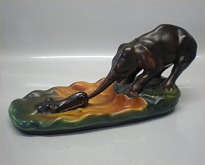 Beskrivelse: Sv. Lindhart rødglaseret Kineserdreng 28 cm Dansk Keramik