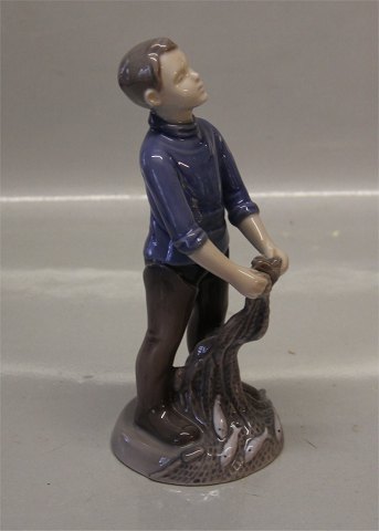 : Bing & Grøndahl B&G 2338 Dreng med fiskenet 20 cm, Vita Thymann I fin og hel stand.