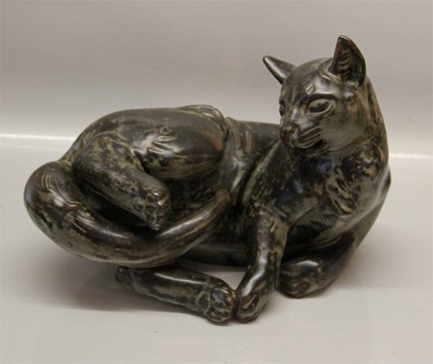 Kongelig Dansk Stentøj Unik Helge Christophersen kat - Sung glasur