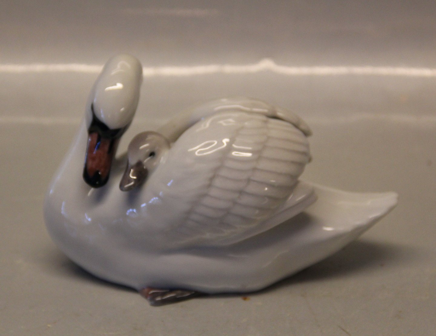 Beskrivelse: Kgl. fuglefigur fra Royal Copenhagen 0360 Kgl. Svane med ælling 9 x 16 cm Allan Therkelsen 1995 I hel og fin stand Svaneunge