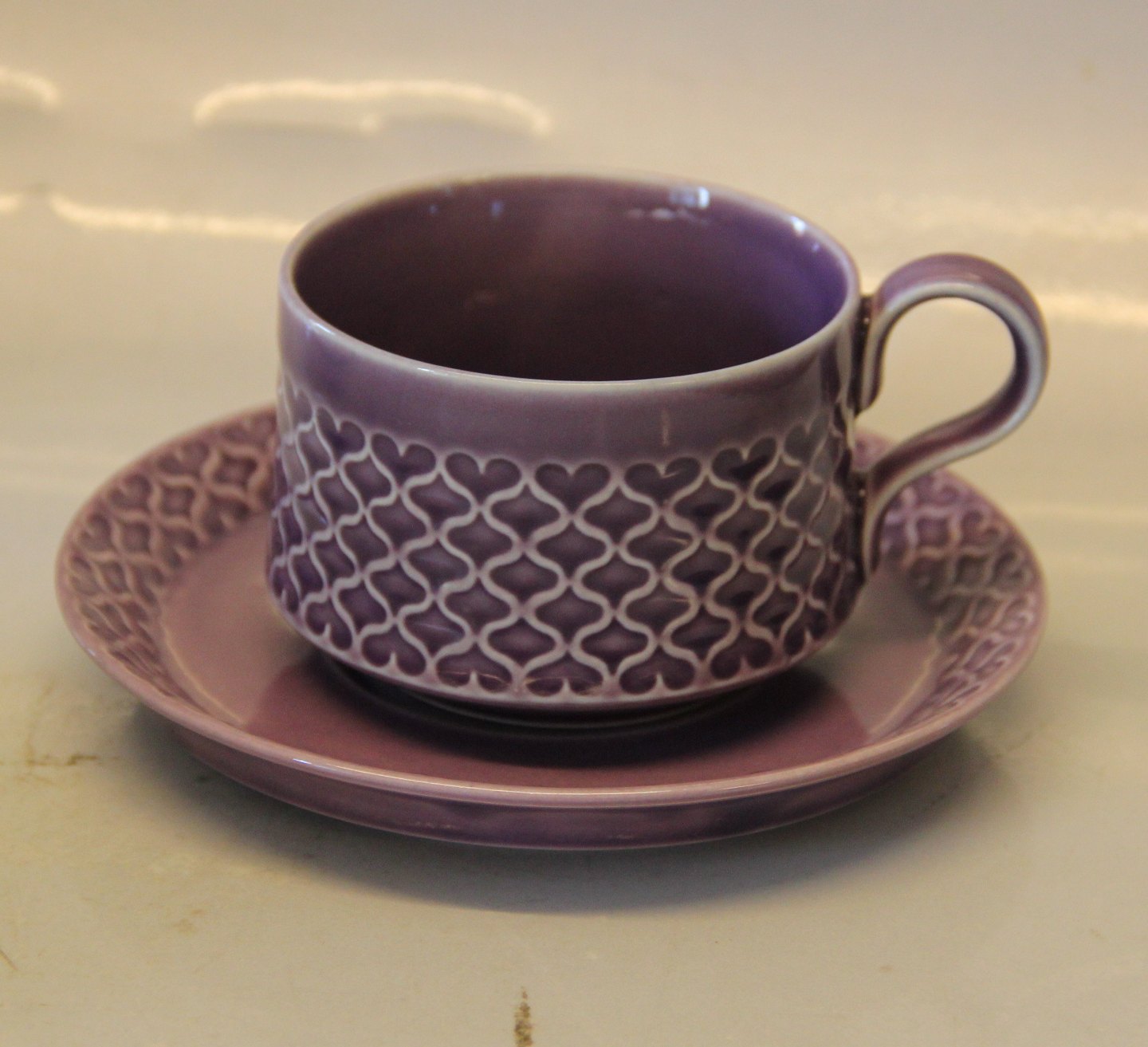 305 Kaffekop og underkop 7,5 cm 1,5 dl Palet Lilla Dansk Stentøjsstel farvet Cordial