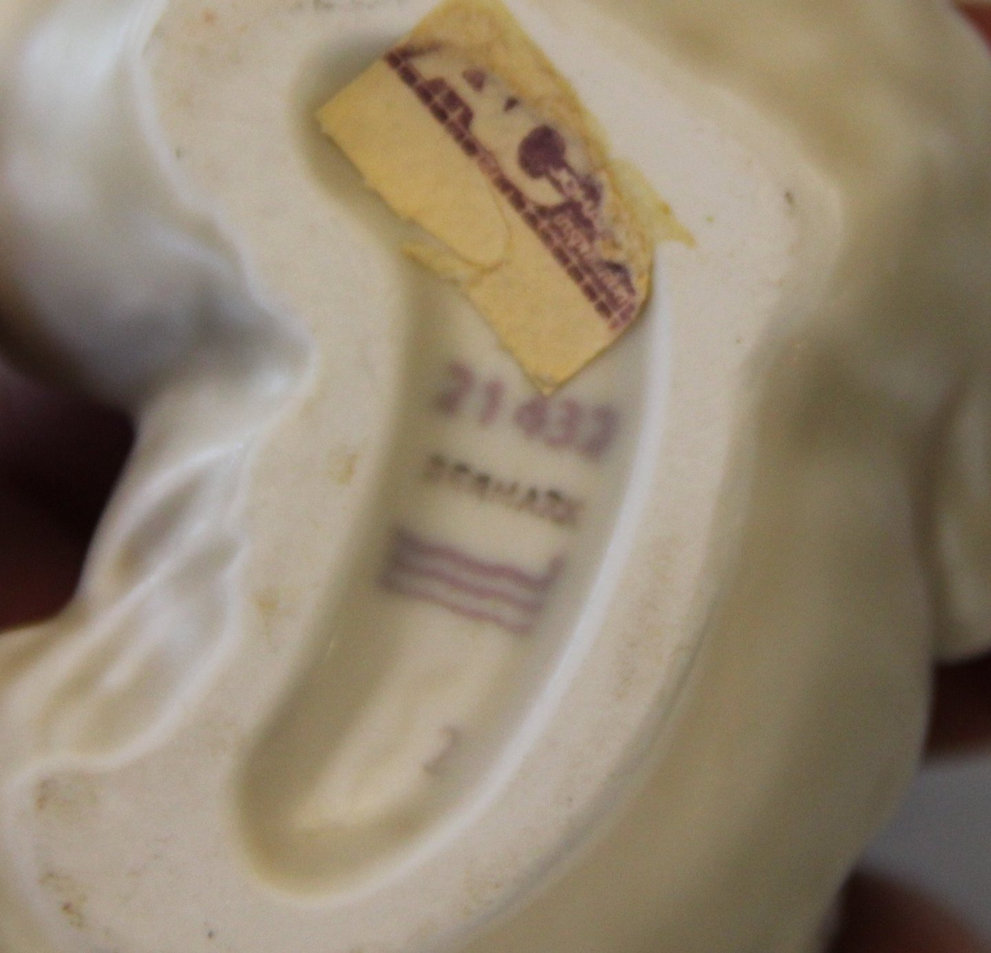 21432 Kgl. Celadon glasseret bjørneunge liggende på siden 4 x 9 cm Knud Kyhn feb. 1957