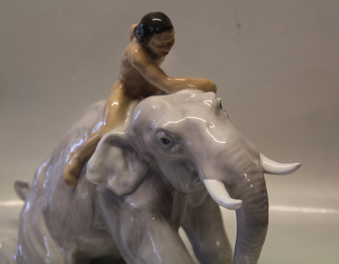 : Bing & Grøndahl B&G 1858 Elefant og Mahout 28 x 37 cm I fin og hel stand.
