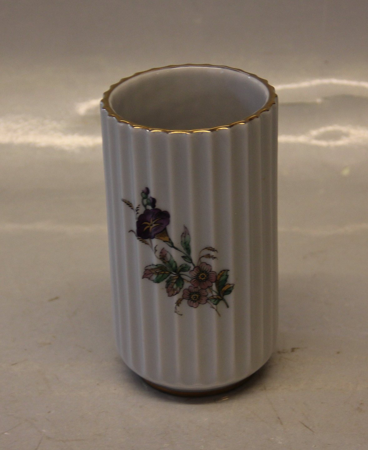 Lyngby 4015 Original klassisk kanneleret lyngbyvase med blomster og guld 15 cm Billede # 1 Ej på lager