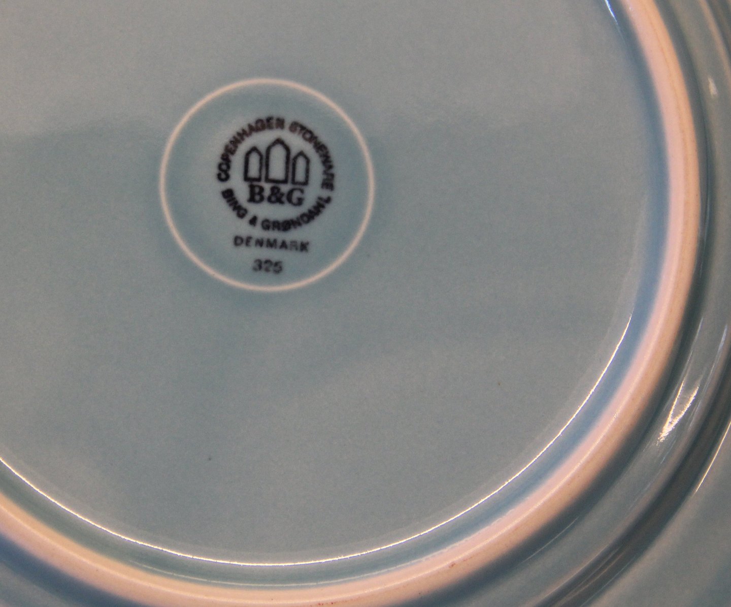 325 Tallerken 24 cm PALET - Turkis - mint Bing & Grøndahl B&G Cordial Quistgaard Nissen Kronjyden stentøjsstel. I fin og hel stand. Bing & Groendahl. Stemplet Kronjyden eller Bing & Grondahl Copenhagen Stoneware: Designet for Kronjyden, Nissen af Jens Harald Quistgaard IHQ