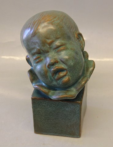 Barnehoved på fod - buste 17 cm Arne Ingdam Signeret AI Denmark Grønig glasur