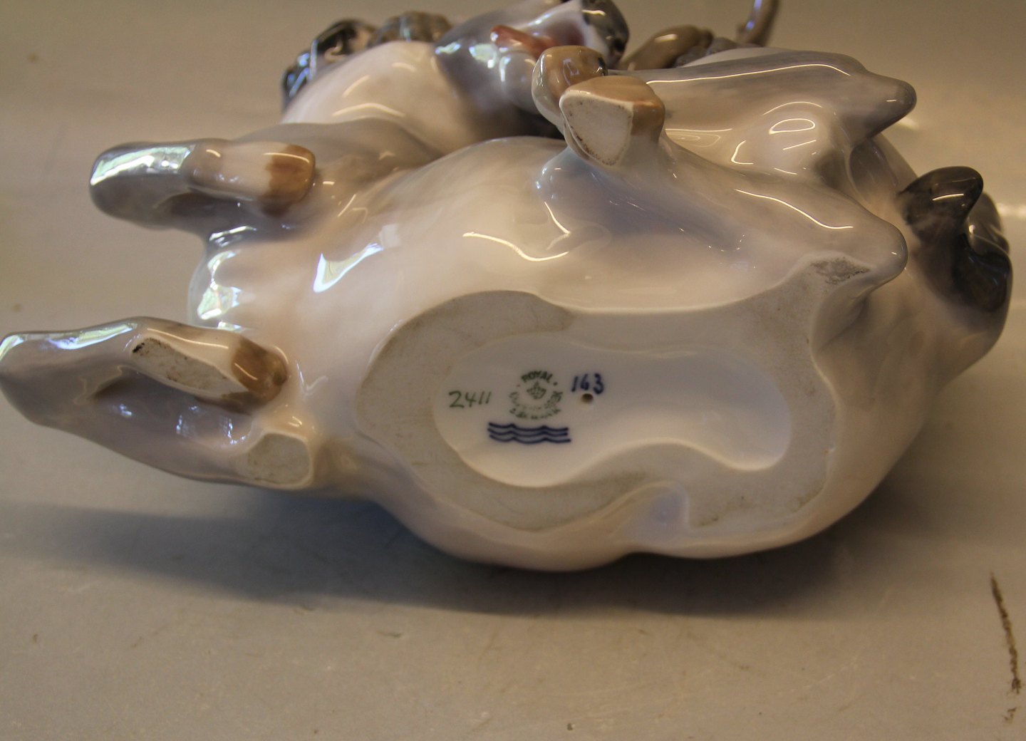 Beskrivelse: 2411 Kgl. Bjergløve angiber hjort 25 x 29 cm KK figur fra Royal Copenhagen I hel og fin stand