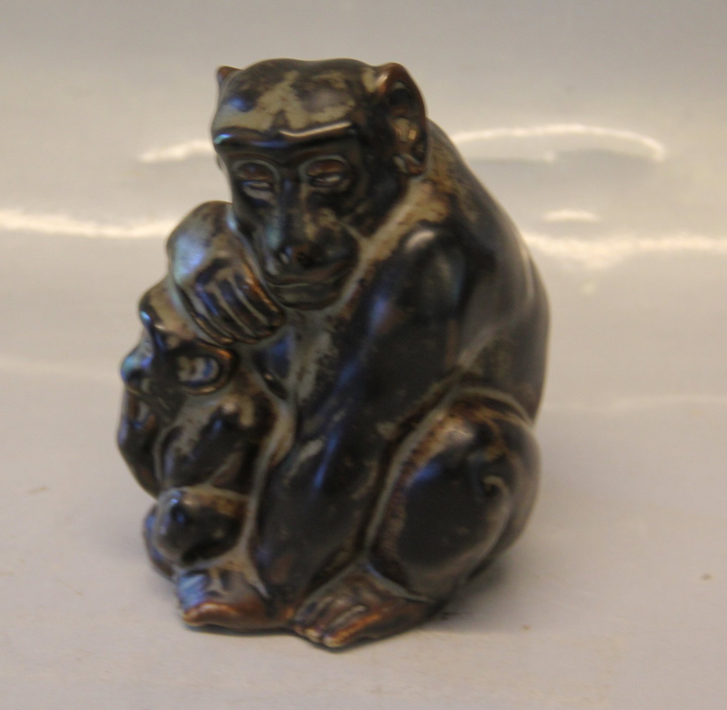 Beskrivelse: 20199 Kgl. Abe med unge 12 x 10 cm, Knud Kyhn, april 1929 Royal Copenhagen stentøj I fin og hel stand