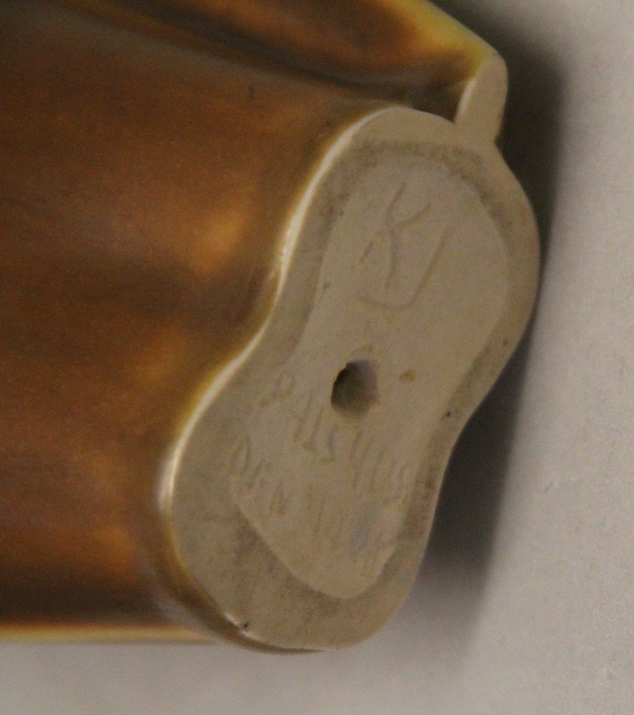 Beskrivelse: Palshus Elefant Brun Harepelsglasur ca 12.5 cm Keld Jordan Signeret K Denmark Kjeld Jordan for Palshus