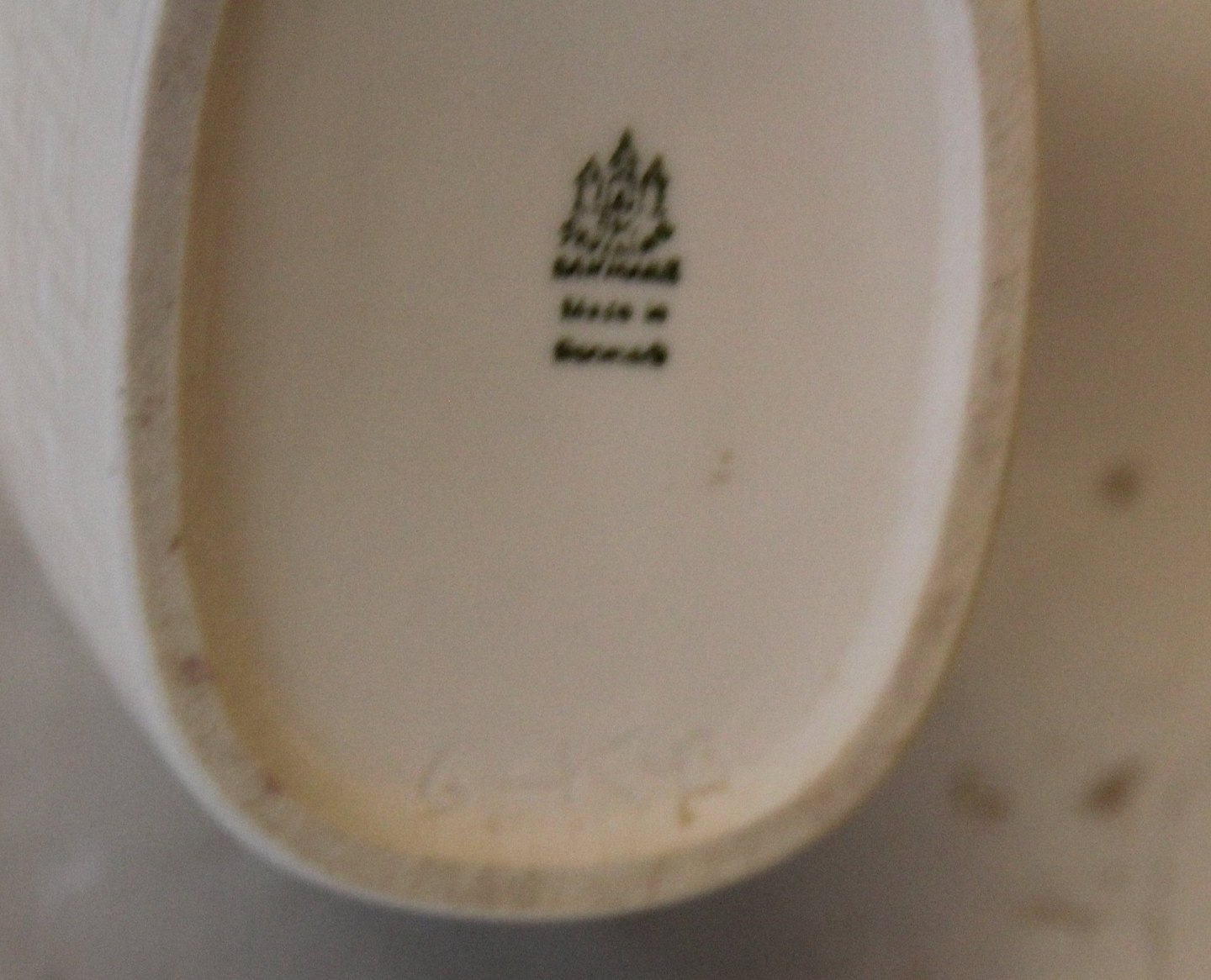 Beskrivelse: Hvid vase 14 cm med flettet relief med T'er Bing & Grøndahl Utydelig signeret - kender nogen kunstner heller historik? Bing & Grøndahl I fin og hel stand. Blanc de Chine