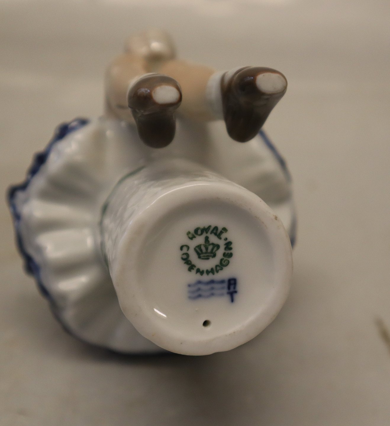 Beskrivelse: Kgl. Kongelig Dansk Pigefigur Lille Ballerina på stol 15 cm fra Royal Copenhagen I hel og fin stand