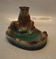 Michael Andersen Siddende Isbjørn 13 x 18 cm grøn og brun glaseret Brændingsrevne Bornholmsk Keramik