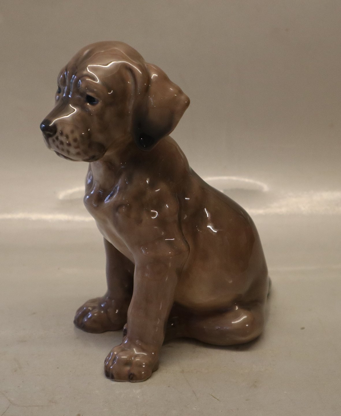 Beskrivelse: Dahl Jensen. 1255 Broholmer hvalp (LJ) 17 cm Mærket med kongelig krone og DJ Copenhagen i hel og fin stand.