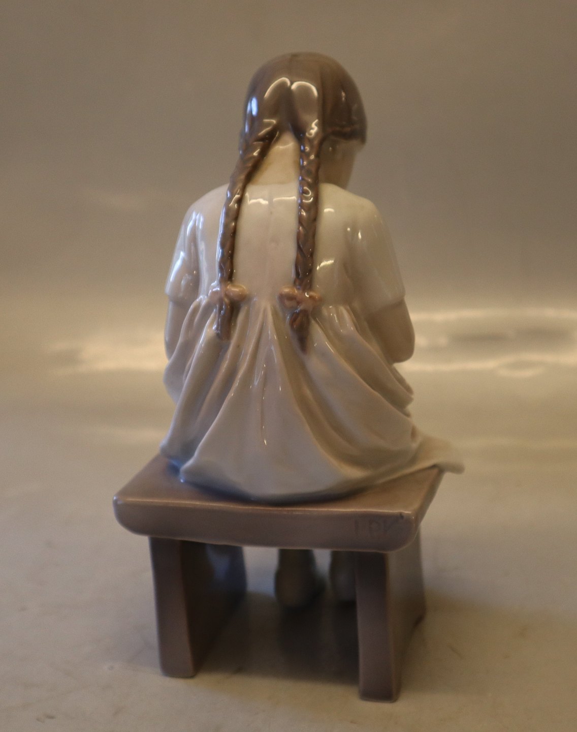 B&G figur 1879 Strikkende Pige på skammel 19,5 cm