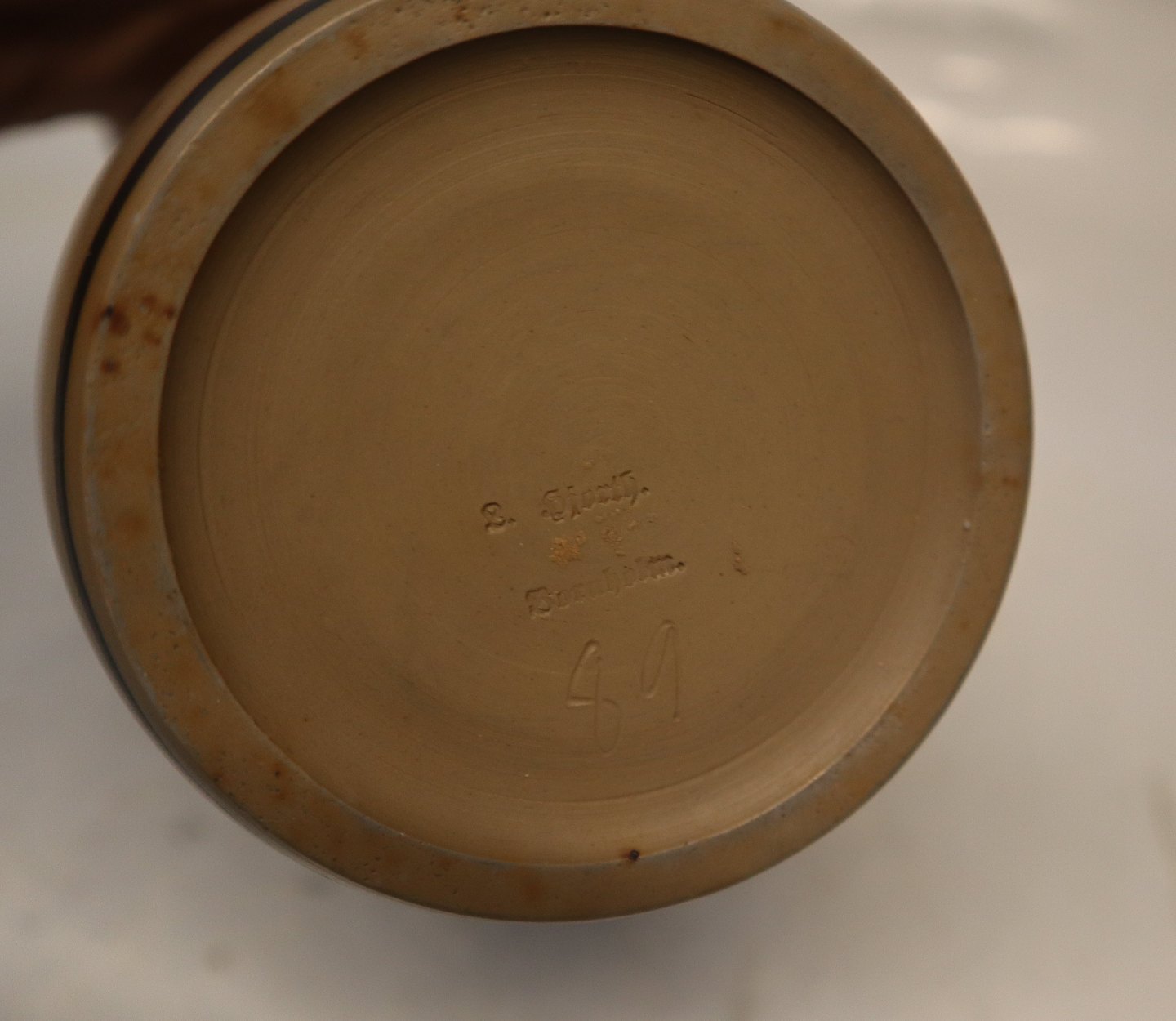 Beskrivelse: Brun Vase 19 cm Skønvirke dekoreret #89 L. Hjorth Bornholm Danmark