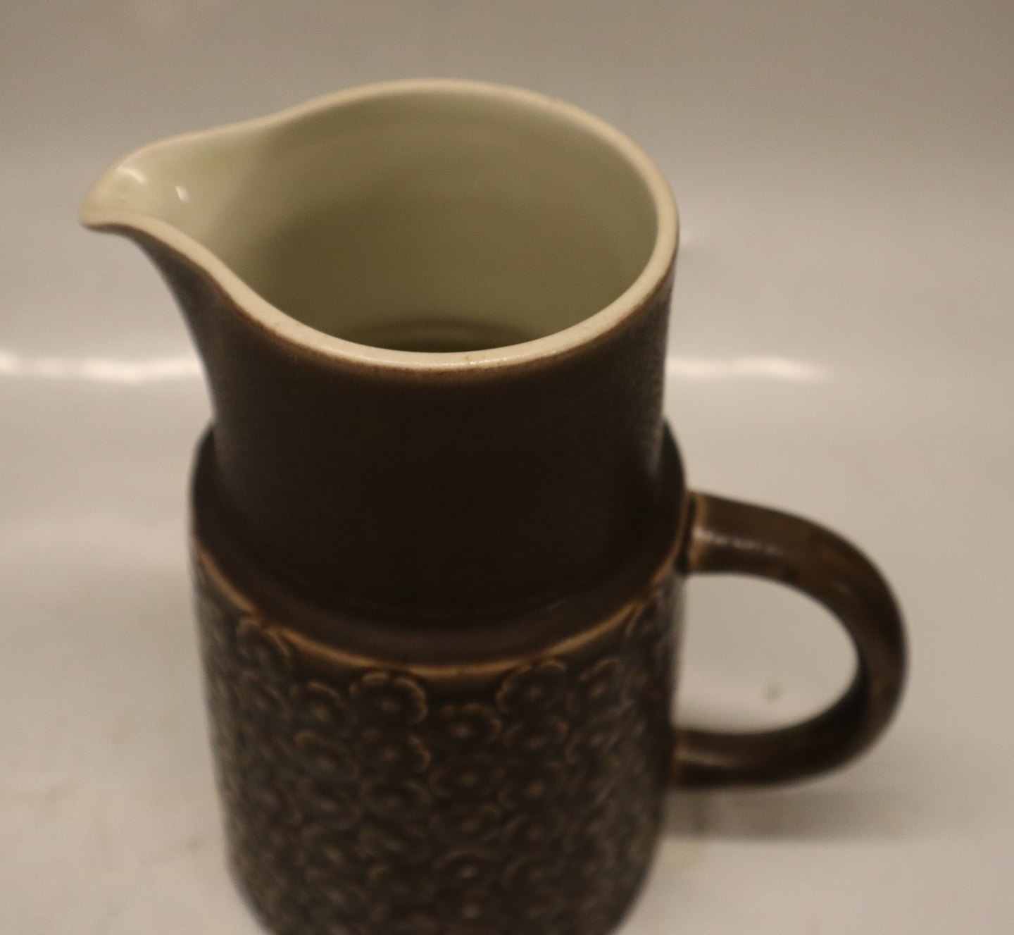 444 Kakaokande / Mælkekande 18 cm Umbra Brun Quistgaard Nissen Kronjyden stentøjsstel. I fin og hel stand. Stemplet Kronjyden eller Bing & Grondahl Copenhagen Stoneware: Designet for Kronjyden, Nissen B&G af Jens Harald Quistgaard IHQ