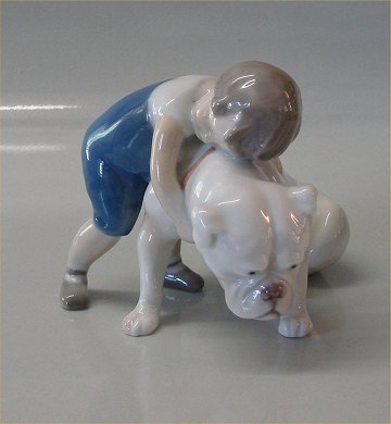 : Bing & Grøndahl hund B&G 1790 Dreng med Engelsk bulldog - gode venner 10 x 13 cm I fin og hel stand.